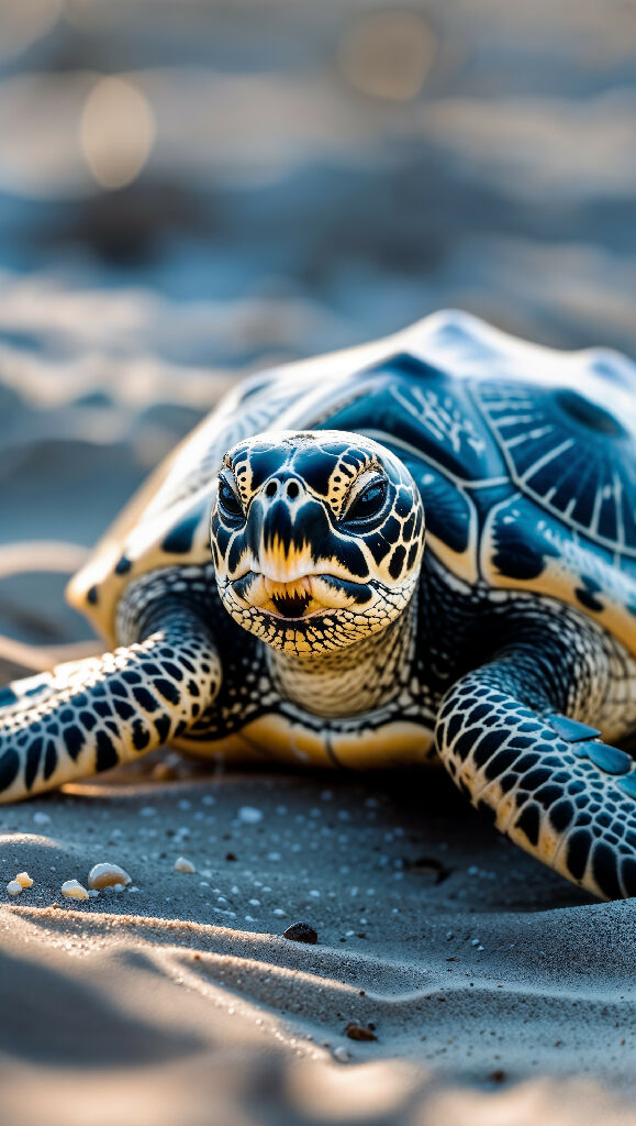 Experience the peaceful essence of nature with this captivating AI-generated artwork featuring a serene turtle resting on warm, golden sand. This masterpiece beautifully captures the essence of patience, resilience, and harmony as the gentle creature enjoys a moment of stillness by the shore. The soft textures, earthy tones, and intricate details bring this tranquil scene to life, making it a perfect addition to any art collection.