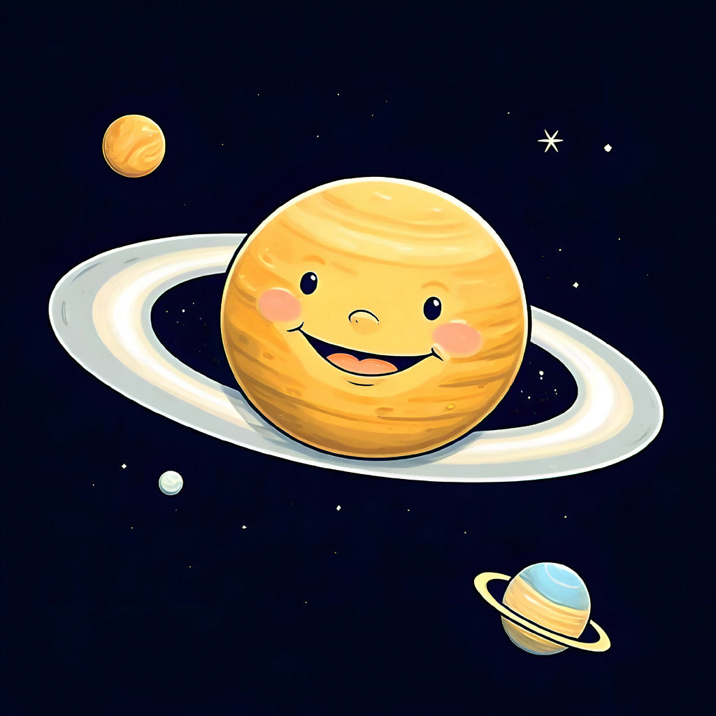 Saturn’s Cheerful Orbit is a charming AI-generated space illustration that brings a whimsical touch to the cosmos. Featuring Saturn with an adorable, smiling face and glowing rosy cheeks, this piece blends the beauty of celestial wonders with a fun, character-driven design. Encircled by its iconic rings, Saturn is joined by friendly planetary companions, set against a starry cosmic backdrop. This artwork is perfect for space lovers, children’s room decor, educational visuals, and anyone who enjoys a lighthearted take on astronomy.