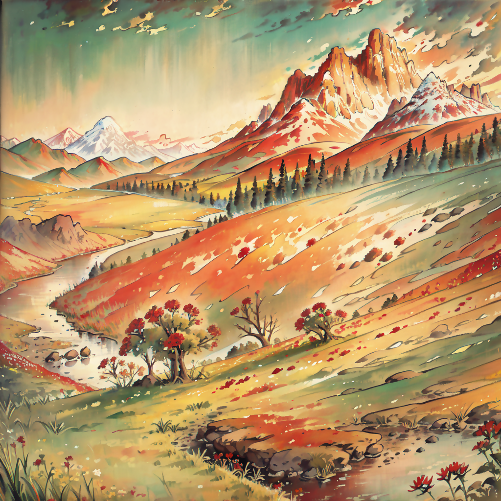 Scarlet Hills is a 100% original AI painting, created to be sold at the AI Art Shop.