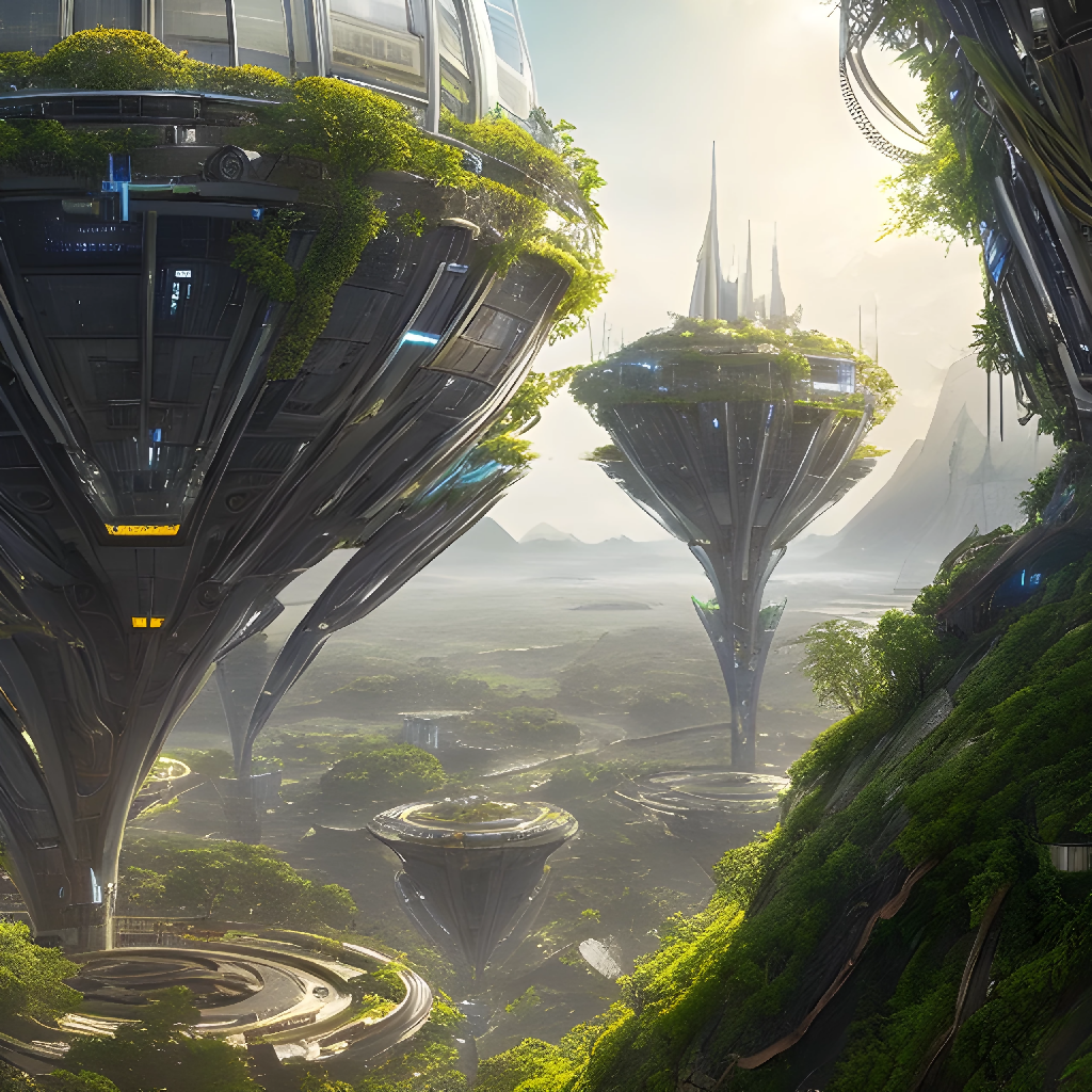 Sci-Fi, Futuristic Solarpunk ECO-City, Detailed, Hanging Gardens, Glass, Solar, organic, Epic, Dramatic, 16k, UHD, HDR,(Masterpiece:1.5), (best quality:1.5)