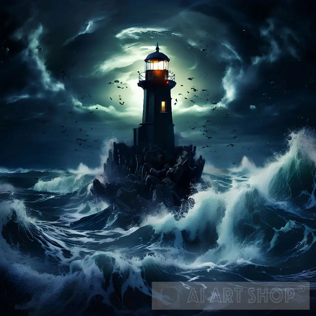 Screaming Sea, Silent Guardian 7: Dramatic Lighthouse Artwork for Coastal Decor