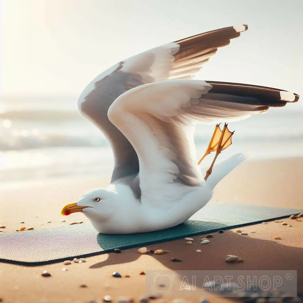 Seagull Yoga Pose on Beach