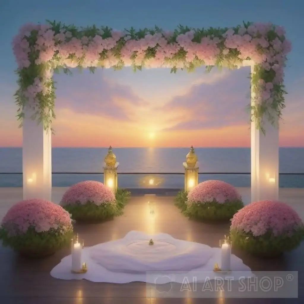 "Seaside Serenity: A Symphony of Roses, Pine Forests, and Sunset Majesty"