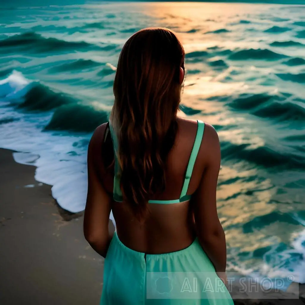 Girl, ocean, sunrise, important moment. The girl from behind symbolizes the distance of the moment, the separation from everyday life and the union of the soul with nature, with the ocean, the first source of life. Sunrise symbolizes new beginnings, the return of light and the end of the intimacy of the night.