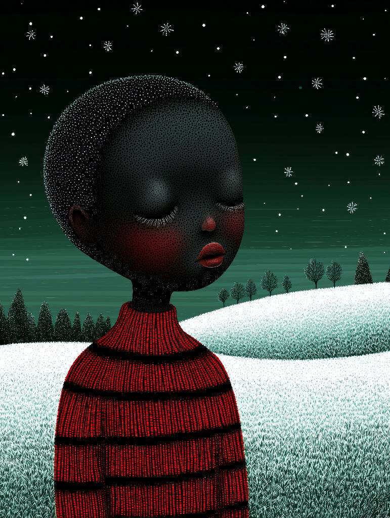 🔖 Tags: serene portrait, winter art, AI portrait, calm mood, minimal art, digital painting, solitude, contemporary art, AIartshop, modern decor