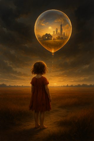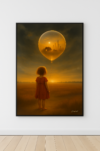 She Carries the Future – Emotional Girl with Balloon | AI Digital Art | Limited Edition Print