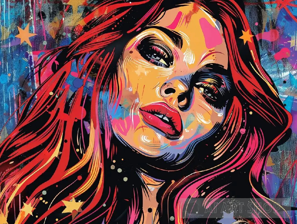 In this pop art painting, a girl embodies the essence of the zodiac sign Virgo with her calm and composed demeanor. She exudes a sense of grace and sophistication. This pop art painting captures the essence of Virgo in a modern and sensual style.