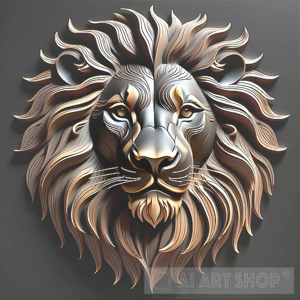Silhouette design of a majestic lion, beautiful details, relief carving, realistic shading and details, fine lines, complex design, high resolution, black background