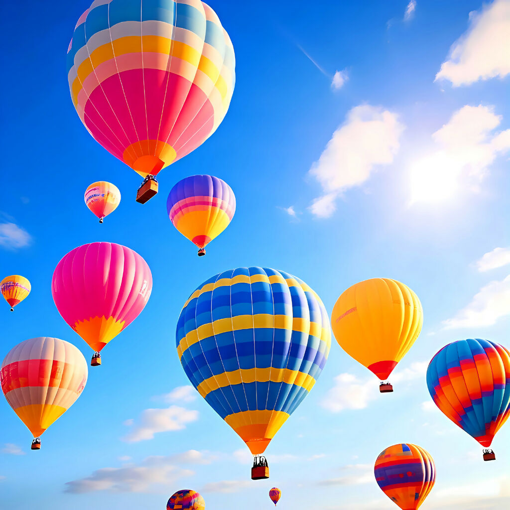 A radiant celebration of freedom and wonder, Skybound Symphony captures a fleet of hot air balloons drifting across a crystal-clear sky, each one painted in joyful hues of red, orange, pink, and blue. This AI-generated landscape artwork evokes the magic of early morning balloon festivals, where silence meets spectacle and the horizon becomes a canvas of dreams. Inspired by the timeless allure of flight and the human desire to rise above, this piece invites viewers into a tranquil world where gravity loosens its grip and imagination takes flight.