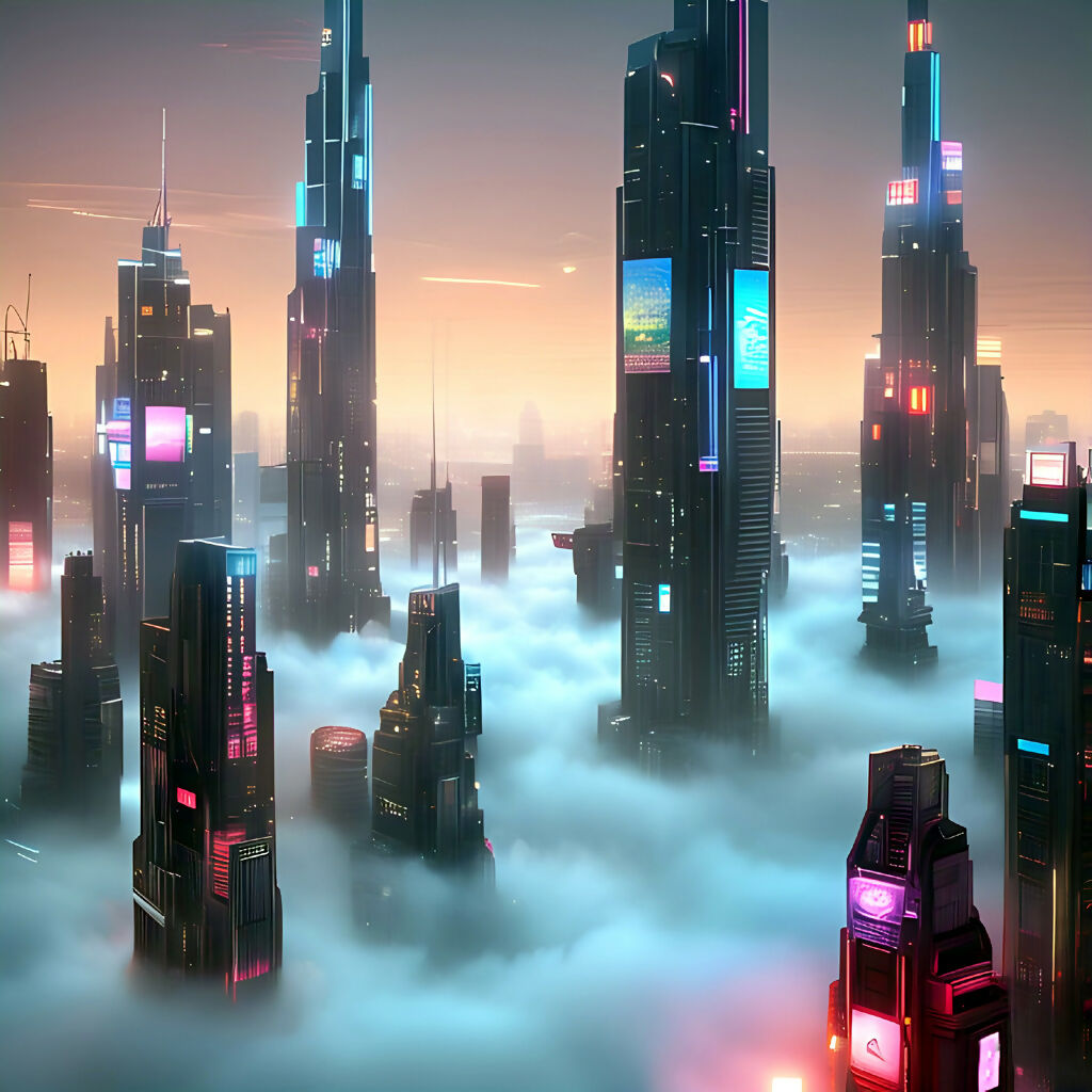 Immerse yourself in a visionary city where architecture meets imagination. "Skyline Ascension" is a stunning AI-generated masterpiece depicting futuristic skyscrapers rising through a sea of clouds, illuminated by radiant neon lights and digital panels. The dreamlike twilight palette—blending deep blues with warm amber—creates a surreal mood that evokes both modern elegance and sci-fi wonder. Ideal for lovers of urban innovation and architectural design, this piece adds a dynamic and ethereal touch to any space.