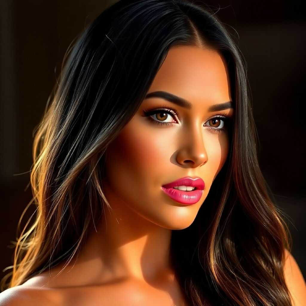 Soft Light Elegance is an AI-generated portrait highlighting the charm of a dark-haired model bathed in gentle light. Subtle shadows and vibrant tones create a refined and contemporary look, perfect for collectors of modern AI portraiture.