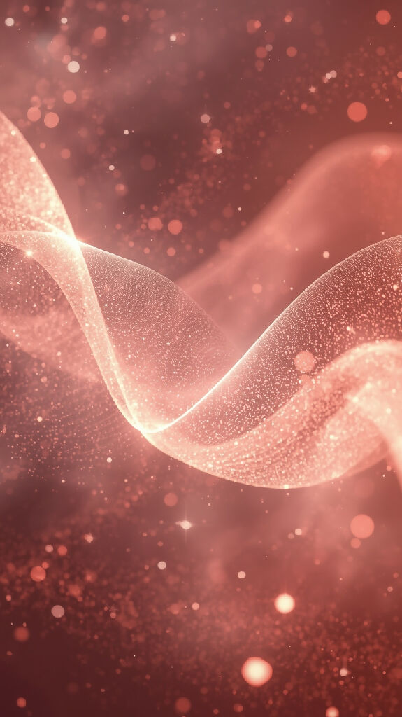 Soft luminous waves of light ripple through air like sound vibrations. Golden particles, gentle pink mist, and translucent energy lines intertwine gracefully. Minimalist yet emotional ambient background — representing love flowing through music.