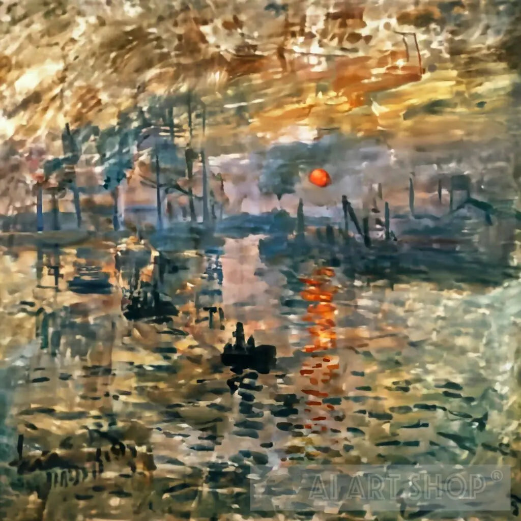 The painting “Soleil Levant,” an impression of a sunrise, by Claude Monet, is the source of the Impressionist school’s name blueprint, paper, detailed notes, labels, highly detailed, sketched on old parchment, desaturated, photo, poster, painting, vibrantv0.1v0.2