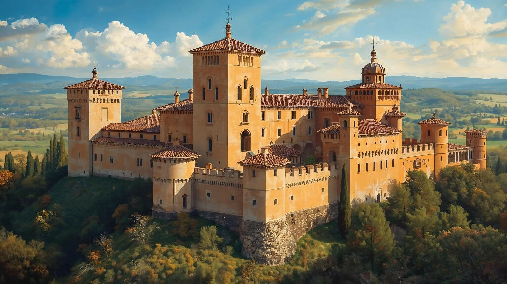 Nicely detailed painting of a castles in Spain capturing the beauty of its surroundings.