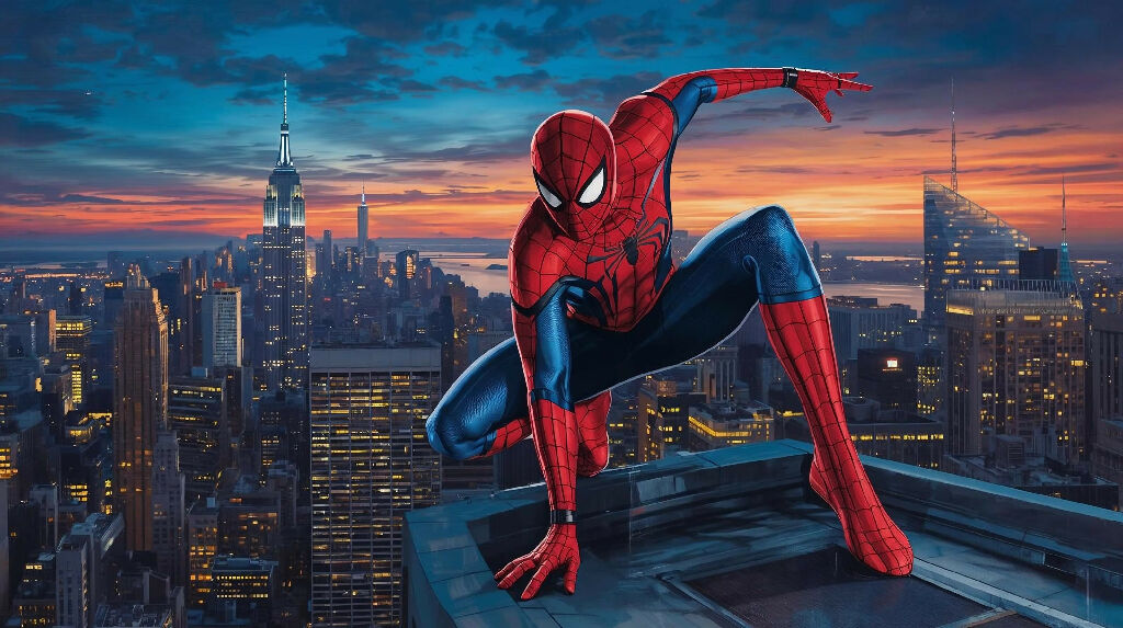 Vividly colored and detailed painting of the Superhero Spiderman.