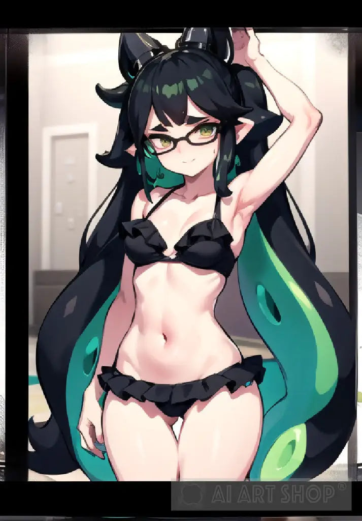 Digital Character art of a squid girl showing off in a cute bikini