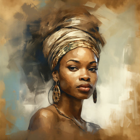 Represents an unyielding spirit and the power of resilience through the woman's proud stance. Inspires admiration and respect for the subject's strength and grace. Appeals to art lovers who appreciate pieces that convey deep emotional and cultural narratives.