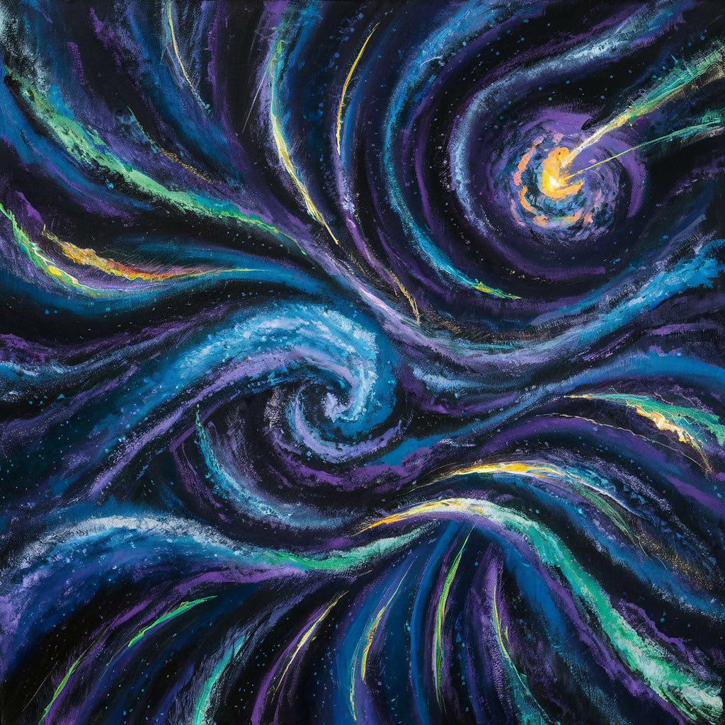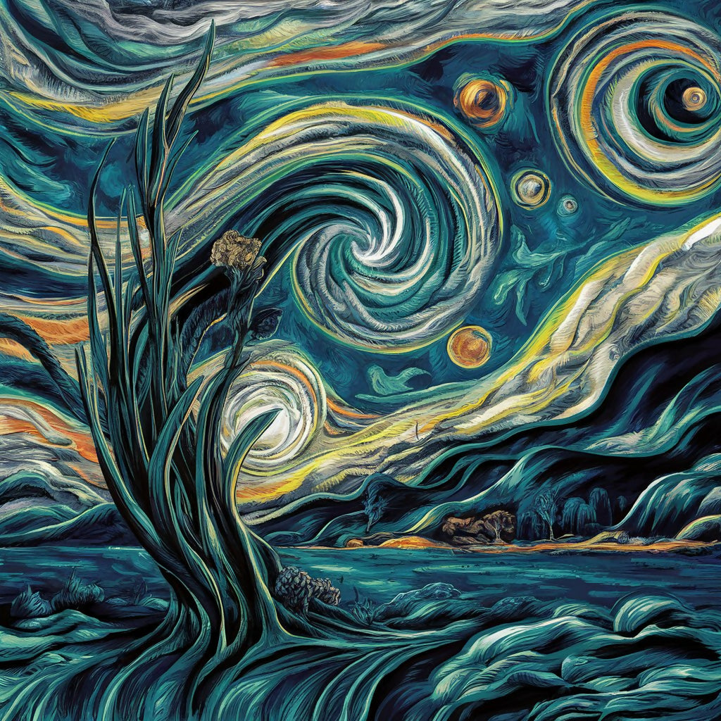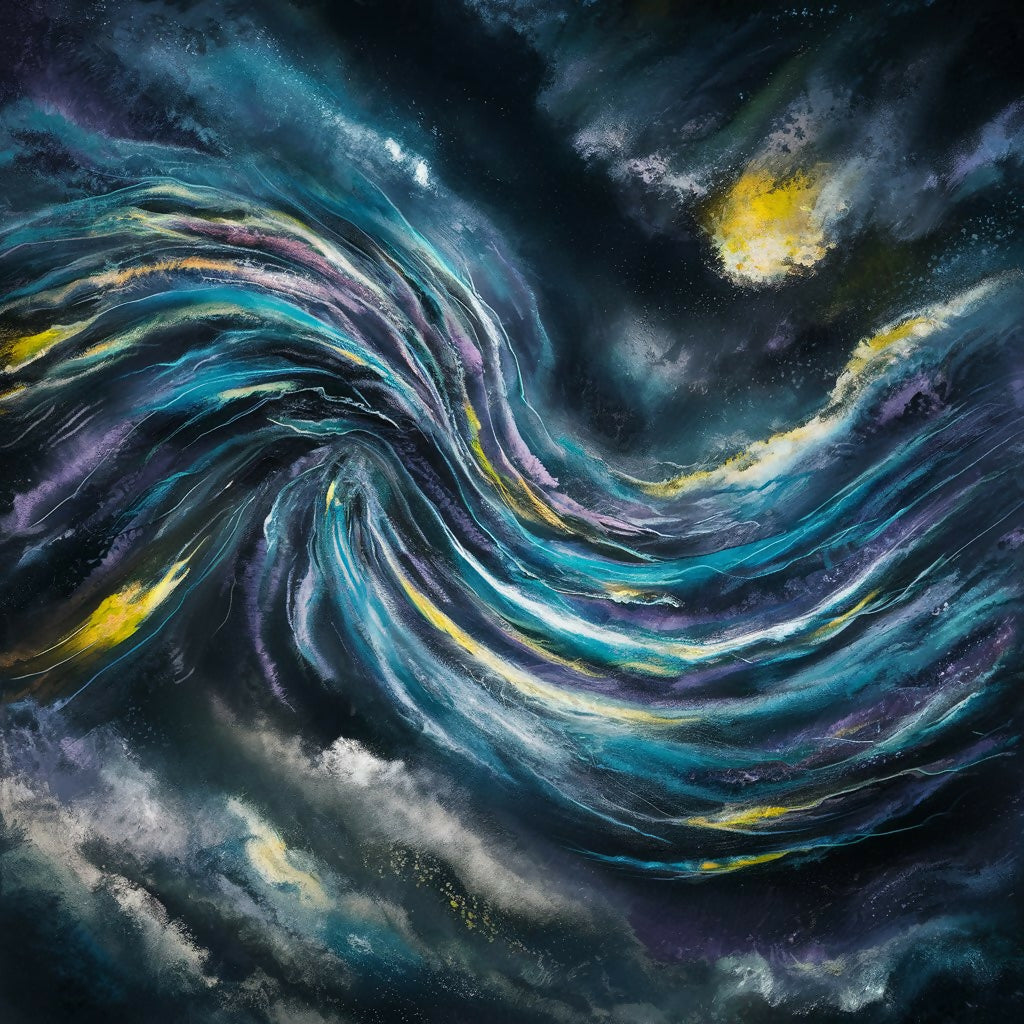 A swirling patterns and dynamic colors to capture the movement of the night sky.
