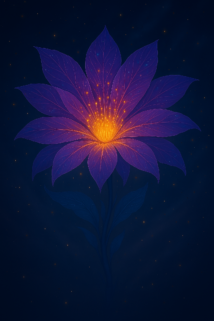 A cascade of intergalactic petals unfurls across a twilight canvas, Stellar Wisteria conjures the dream of galaxies growing like vines through space. With deep violet tendrils and golden stardust accents, it whispers of both mystery and serenity—a floral constellation drifting between stars.