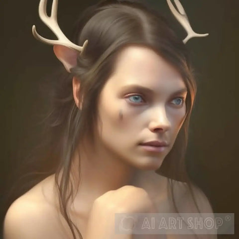 DEERFOLK, FEMALE, STRIVIDI (STREH-VEE-DEE), SHE IS 285 YEARS, SHE HAS LONG BROWN HAIR, BLUE EYES, SUNKISSED SKIN, AND A DARK-BROWN HIDE.