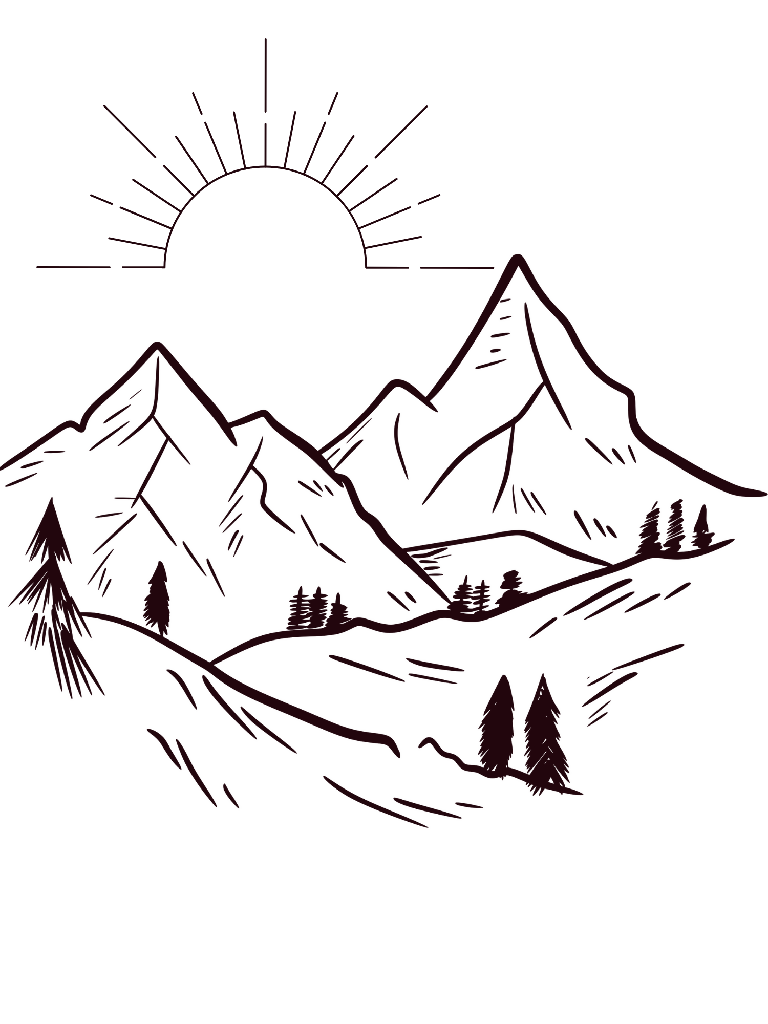 Mountain Line Art Download Printable Nature Scene for Home Decor Find the perfect mountain illustration for your space. This minimalist line drawing features a striking sunrise over mountain peaks.  Ideal for hiking-themed decor, travel-inspired art, and outdoor adventure prints. Downloadable art prints offer instant access to affordable wall art.  Use as digital wallpaper, printable poster, or framed art. Black and white mountain sketch complements any interior style.  Nature landscape art, scenic mountain drawing, line art design, instant download poster. Unique gift idea for nature enthusiasts and art lovers.
