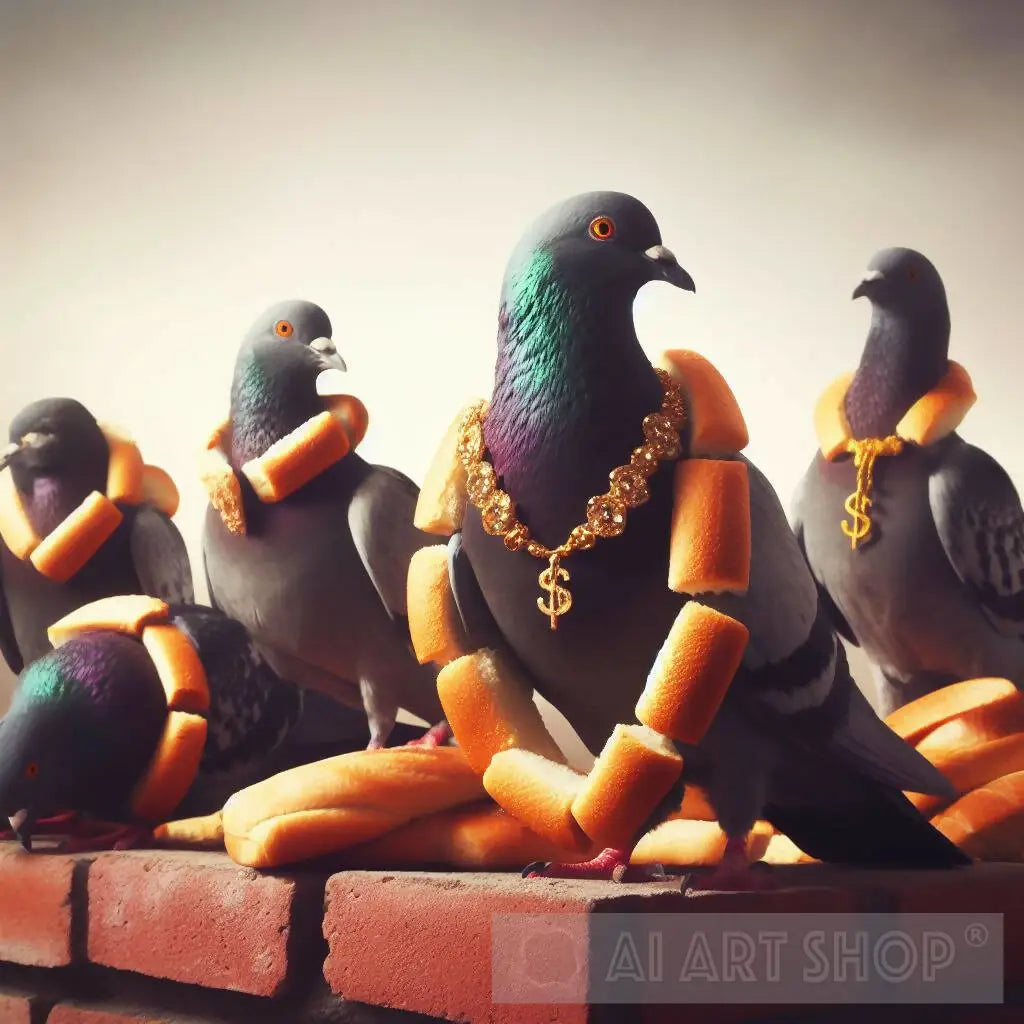 Super Wealthy Pigeons Wearing Baguette Bread Necklaces