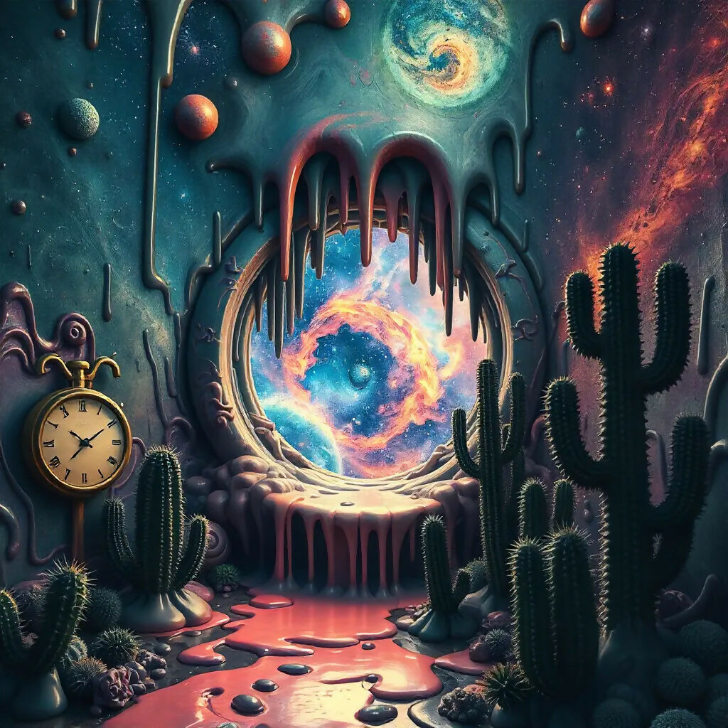 Step into a dreamlike dimension with this AI-generated surreal art featuring a cosmic portal, melting landscapes, and mystical desert vibes. A perfect piece for sci-fi lovers and art collectors. Available now on AI Art Shop!"