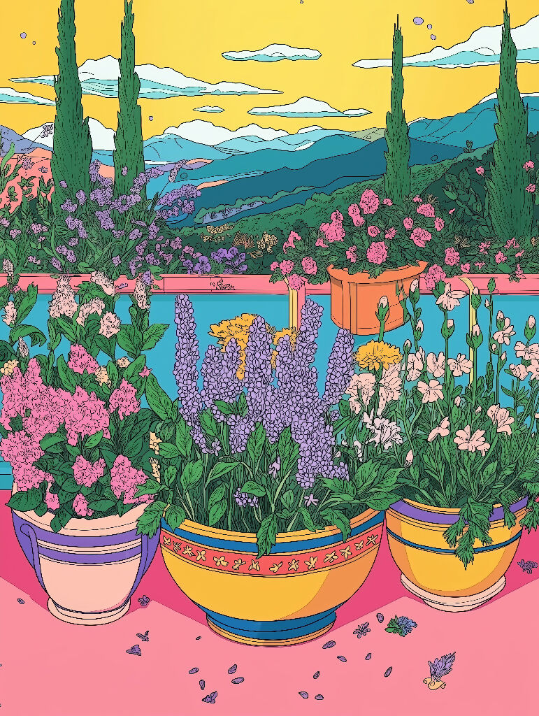 🔖 Tags: floral landscape, surreal nature, colorful AI art, dream valley, imaginative design, AIartshop