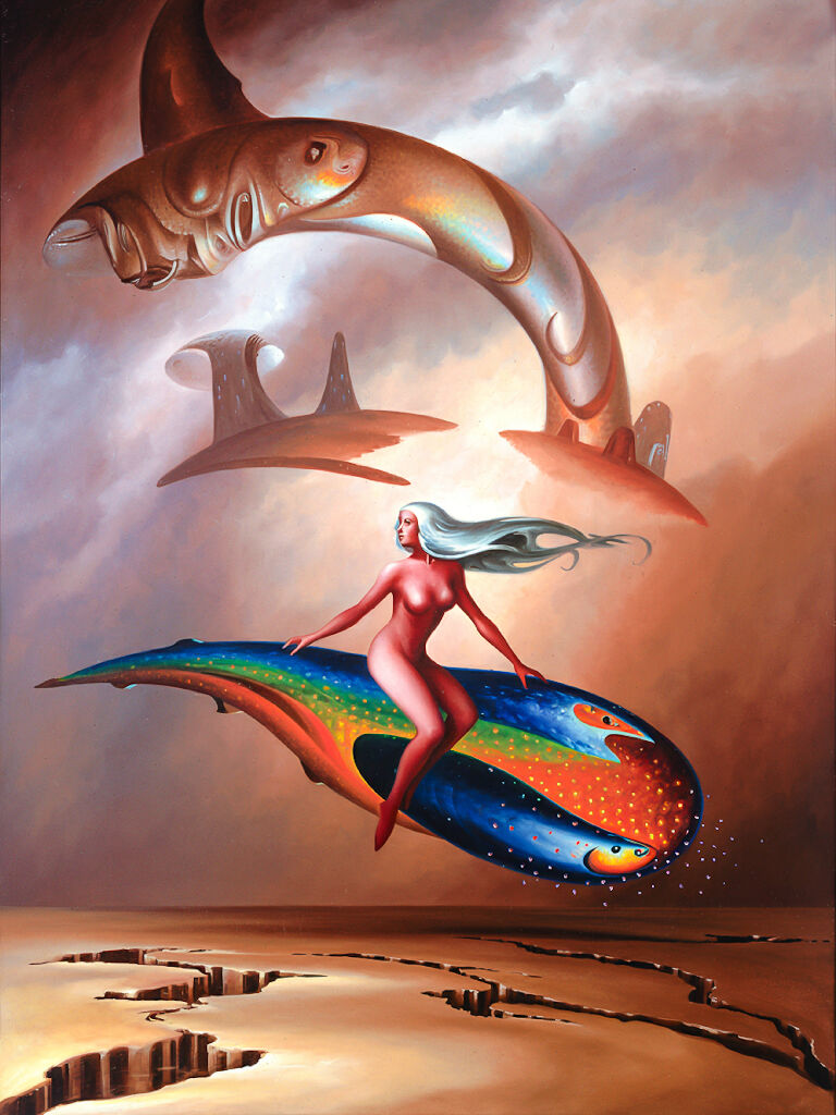 Surrealist Art of Naked Woman Riding a Shark #4