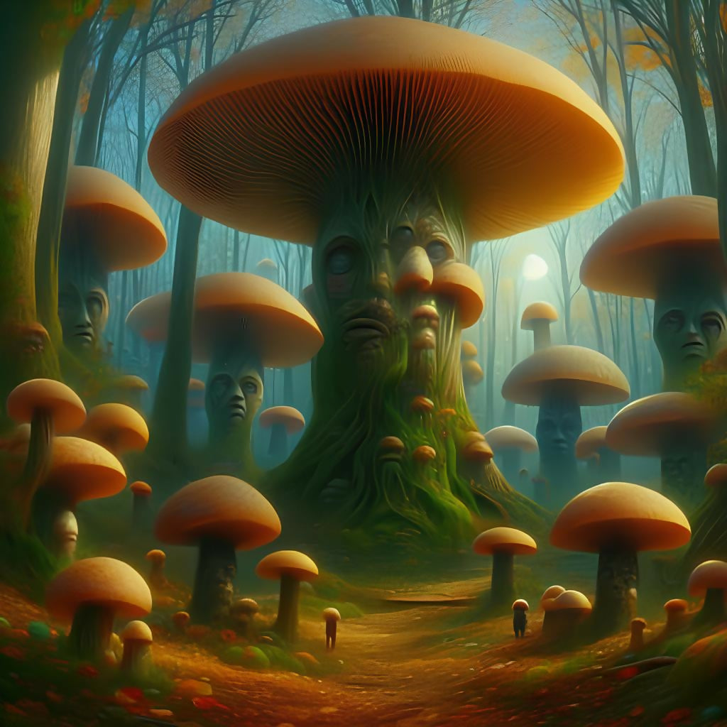 Step into a surreal mushroom forest where nature bends the rules of reality. Towering fungi glow with ethereal colors, casting dreamy shadows over a mystical landscape. A fantasy world where imagination blooms and every step reveals a new wonder.