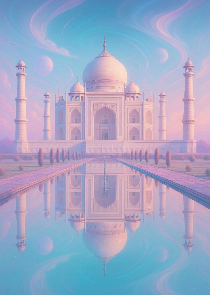 Taj Mahal in a Dreamscape – Surreal Monument Wall Art