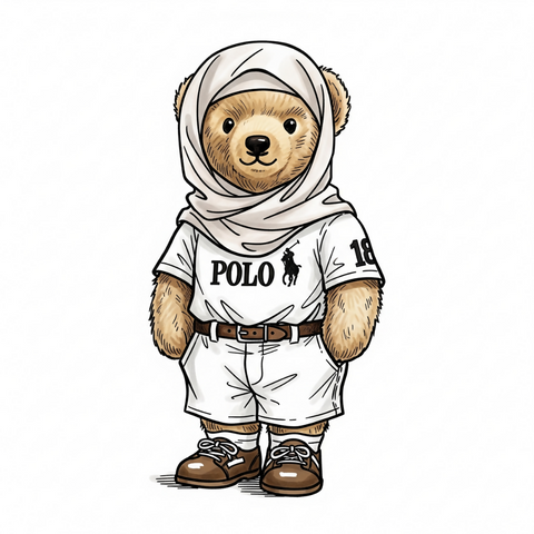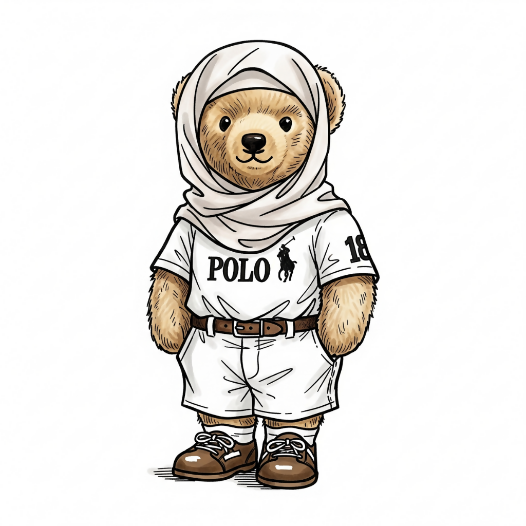 "A unique collection of adorable teddy bear illustrations blending modest fashion with iconic Polo Ralph Lauren vibes. Each teddy wears a different hijab and stylish outfit, symbolizing elegance, culture, and timeless fashion. These artworks are perfect for fashion lovers, children’s decor, or collectors of luxury-inspired character designs."