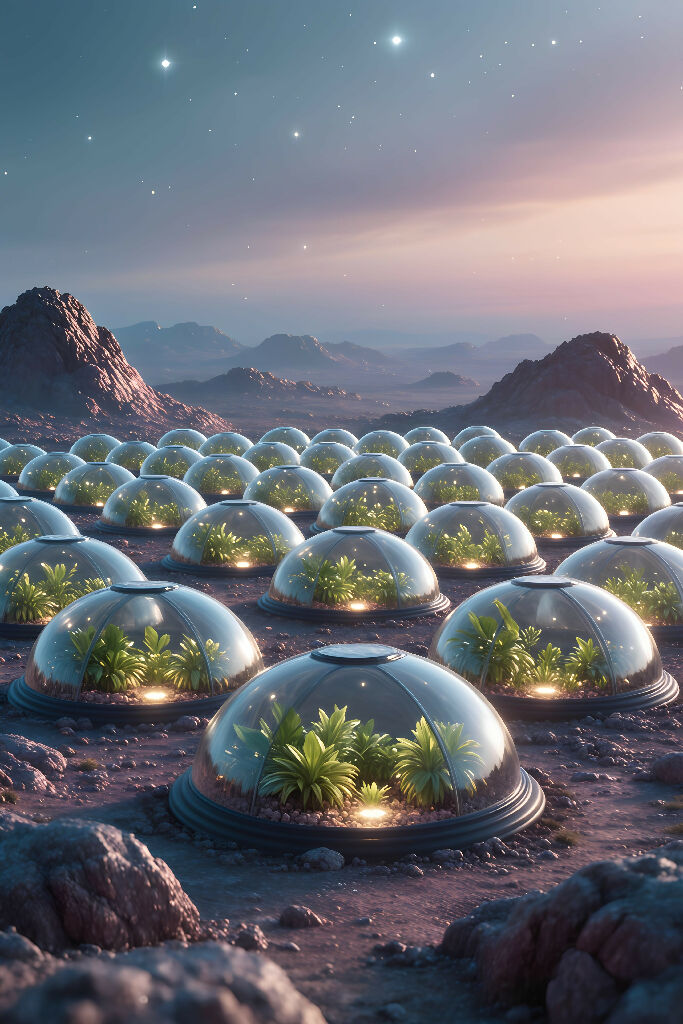 Biodomes are spread across the planet's surface to create an ecosystem.