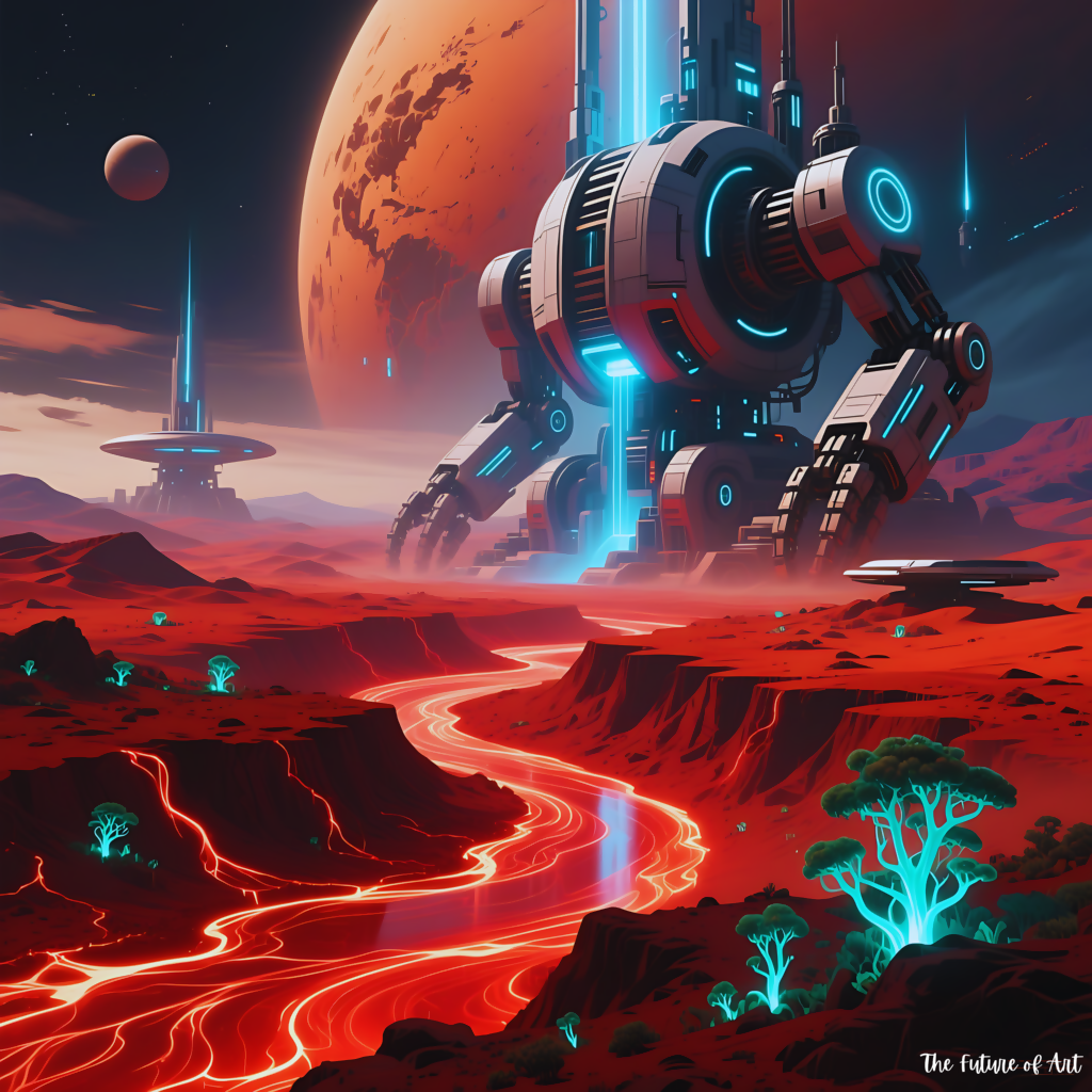 The imagery carries a short, powerful story: patience, precision, and the quiet thrill of turning the impossible into habitat. Ideal as futuristic home décor or a bold studio centerpiece, this AI-generated art balances scale and serenity, inviting long looks and longer conversations. From The Future of Art, it’s Mars terraforming artwork that reminds you: worlds—and lives—can be rebuilt.