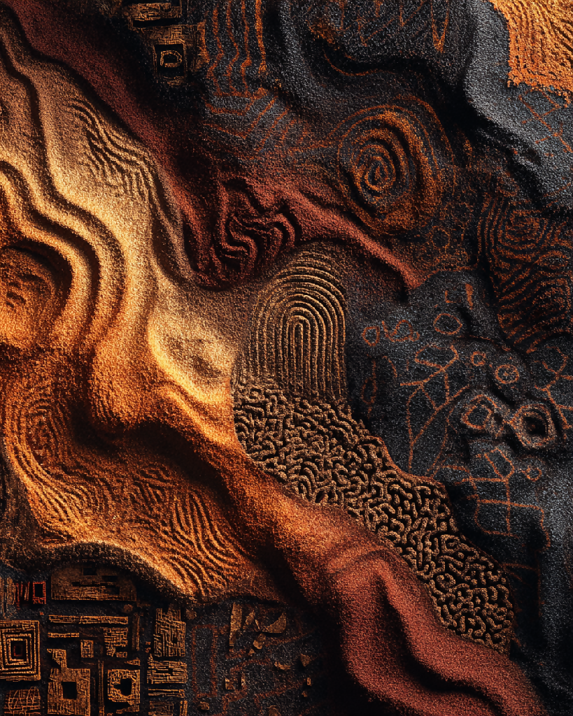 A digital art series that explores the hidden beauty of microscopic and cosmic landscapes. Through densely textured geometric patterns—spirals, fingerprints, labyrinths, and cylindrical structures—each piece reveals a contained universe, like maps of energy, memory, or matter. The compositions invite deep contemplation on the invisible order within the organic, the abstract, and the mineral.
