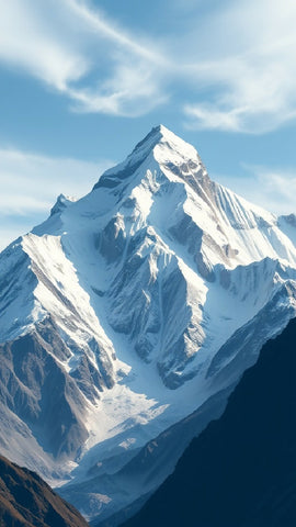 The collection showcases the imposing presence of a single, dominant mountain, focusing on its sharp angles, vast snowfields, and the dramatic effects of light and shadow.