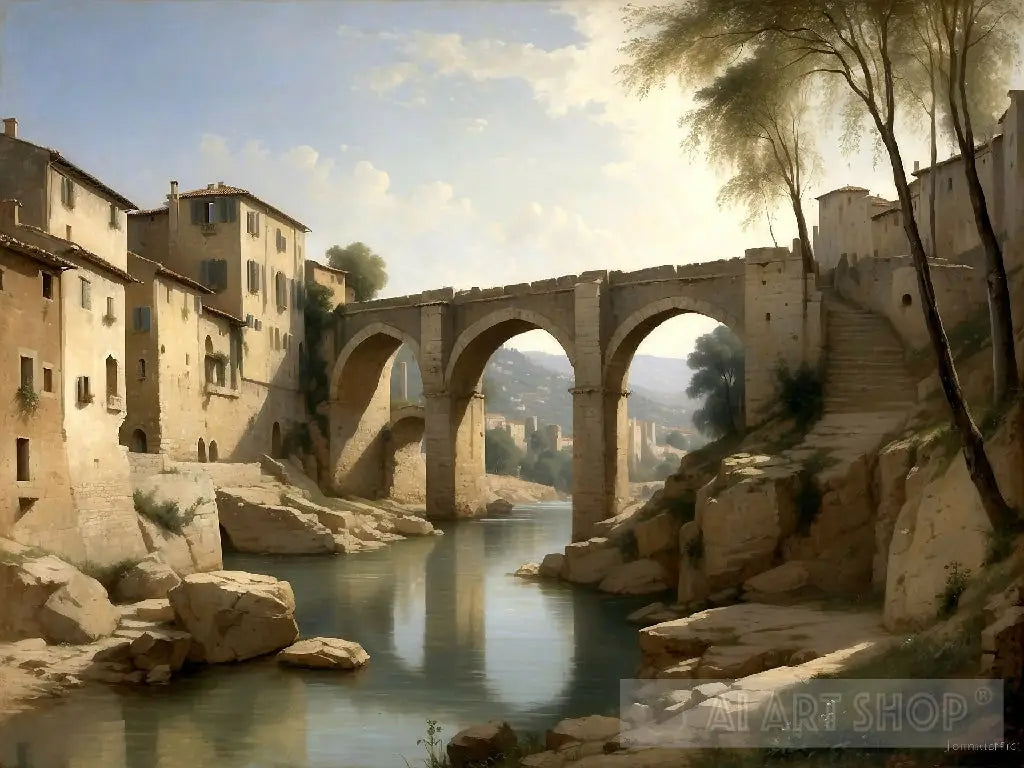 This painting shows a Roman bridge spanning a river in the Italian town of Narni.
