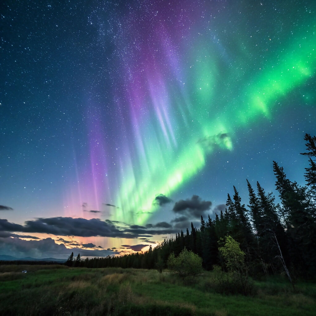 A monumental acquisition of cosmic phenomena. This exclusive artwork captures The Celestial Tapestry, the Aurora Borealis in a vivid, rare display of green and purple light, symbolizing untouched natural splendor and universal wealth. It is the ultimate statement piece for the collector who captures the majesty of the world and the heavens.