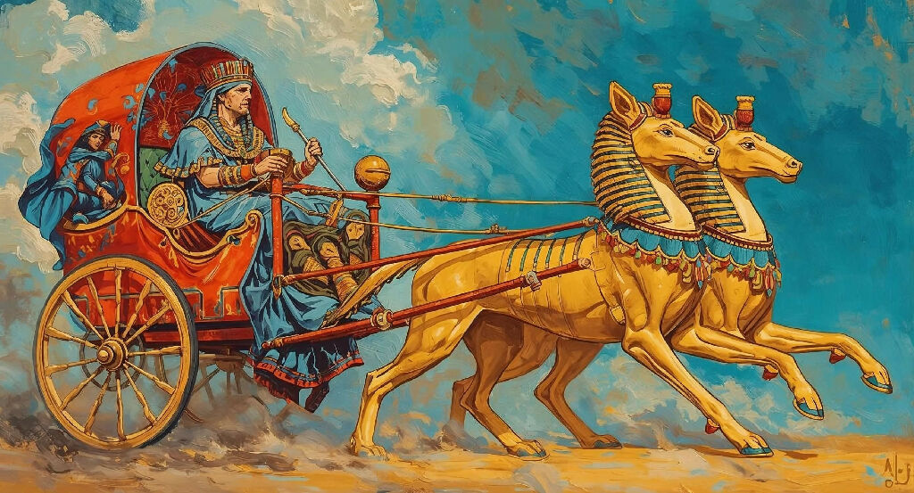 Vividly colored and detailed painting of The Chariot from the Tarot Cards.