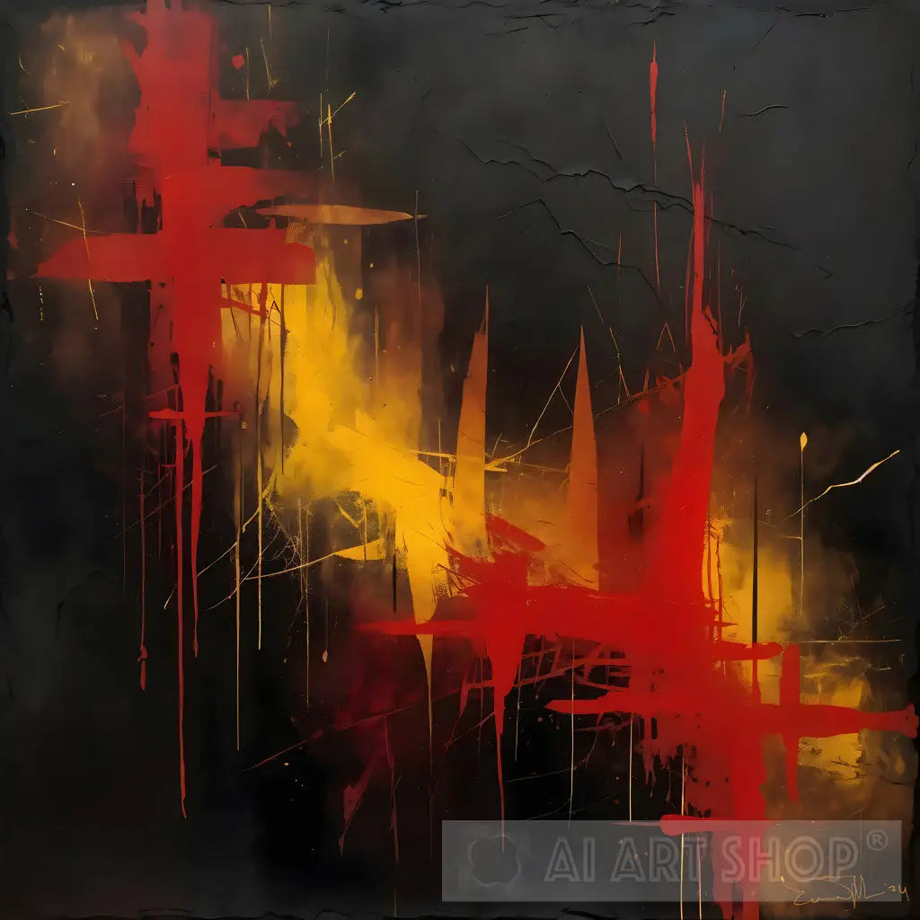 A beautiful AI painting with different colors. Fits in almost any interior. Black, Yellow and Red are the colors most used.