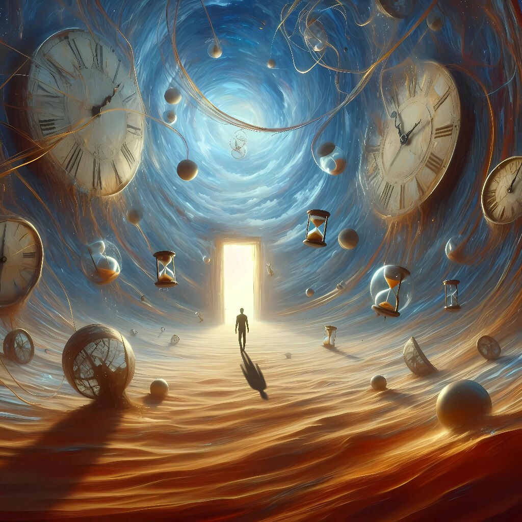 “The Corridor of Time” is a surreal and thought-provoking digital painting that explores the fragile nature of time and self. A lone figure walks through a cosmic tunnel shaped from swirling sands and shattered clocks, surrounded by suspended hourglasses and unraveling threads of memory. A doorway of light beckons in the distance—representing destiny, rebirth, or the unknown. With painterly textures and symbolic elegance, this piece invites personal reflection and existential wonder. Ideal for collectors of meaningful, modern surrealism. Delivered in ultra-high resolution for museum-quality prints.