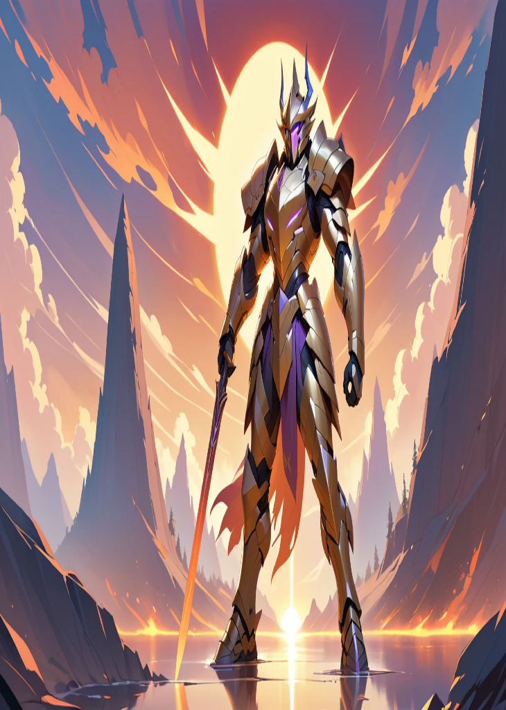*"‘The Cybernetic Guardian’ is a cinematic sci-fi artwork featuring a futuristic warrior standing on a jagged cliff at sunset. Reflective metallic armor, dynamic lighting, and hyper-detailed textures create an epic, immersive scene. Perfect for collectors, sci-fi enthusiasts, and fantasy art lovers.