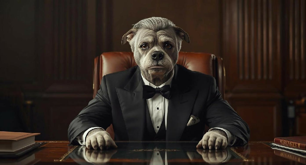 Parody of the classic movie The Godfather with a dog Vito Corleone.
