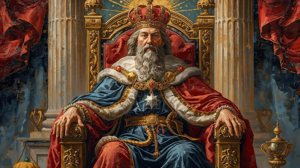 Vivid colored painting of The Emperor from the tarot cards.