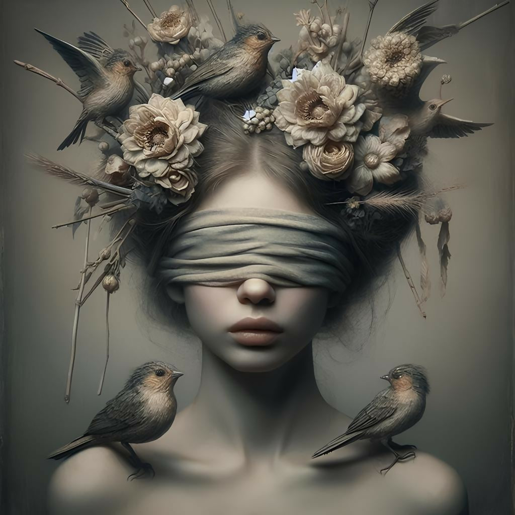 A serene portrait of harmony between woman and nature. “The Bird Whisperer's Friend” captures a gentle soul surrounded by colorful birds, symbolizing peace, freedom, and silent understanding. Perfect for those who cherish the magic of quiet companionship.