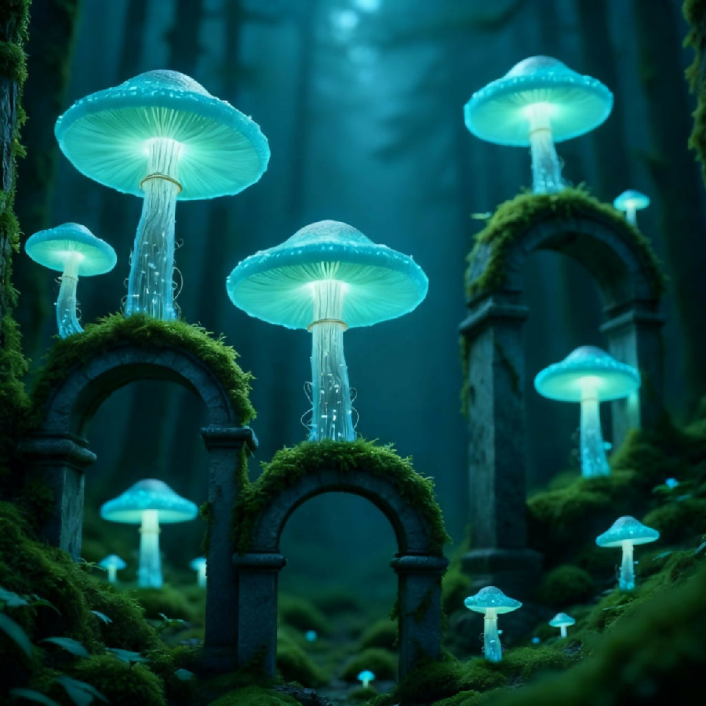 A rarefied glimpse into a hidden, bio-luminescent world of ancient magic. This exclusive artwork captures The Fungal Sanctum, a mystical grove where ethereal glowing fungi bloom over moss-covered forgotten archways. It is the ultimate acquisition for the connoisseur who seeks exclusive access to the sublime secrets of nature, profound mystery, and illuminated hidden realms.