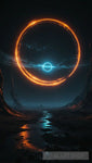 The Moon, centered, casts a dark umbra on Earth, depicting the path of totality. The Sun, in radiant oranges and yellows, forms a stunning corona effect around the Moon, all aligned casting a fading black hole sun halo in the space, orbit space vfx, exosphere, cosmic, astral, quantic, cold and warm,energy-filled epic science fiction film concept digital art by maciej kuciara and vincent di fate,1998 NASA photo, hasselblad electric camera 70mm film, skylab flashlight photography, in the style of Interstellar by Christopher Nolan