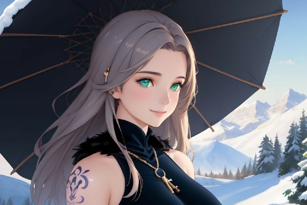AI attractive women portrait in the snow