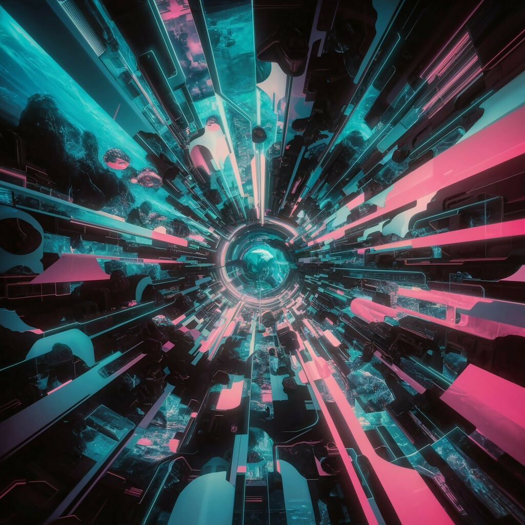This vibrant digital artwork features a swirling tunnel of neon colors. The tunnel appears to recede into the distance, creating a sense of depth and mystery. The neon colors are both bright and eye-catching, and the overall effect is quite stunning. This piece of art would be a great conversation starter in any home or office.