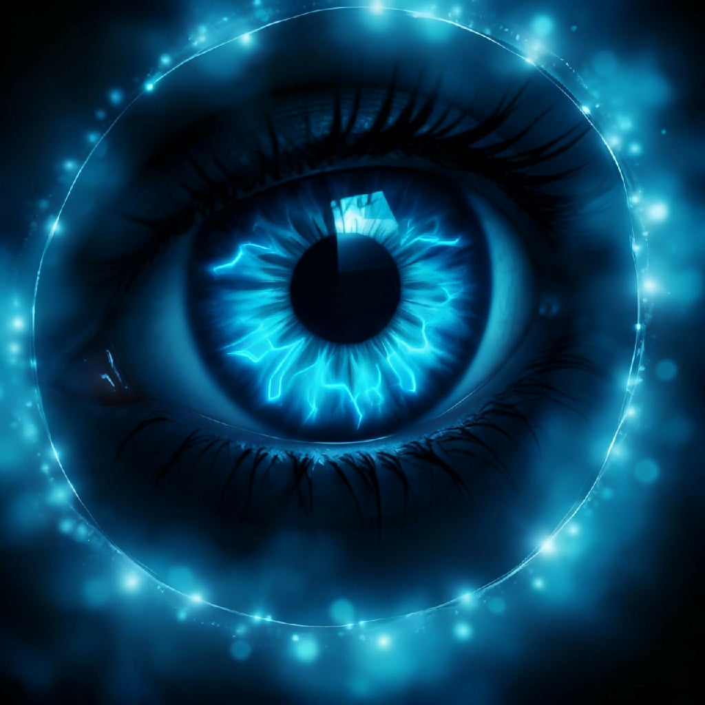 A commanding view of supreme technological intelligence. This exclusive artwork captures The Omni-Gaze, an eye that pulses with the electrifying light of synthetic knowledge and total insight. It is the ultimate acquisition for the visionary who seeks to embody omnipresent control, clarity, and the power of the digitized future.